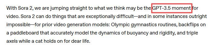而一次的 Sora 2,在他们的眼里,则很可能是视频领域的 GPT-3.5 时刻。